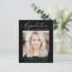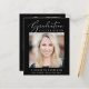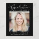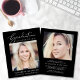 O anúncio da graduação negra e convite de festas de uma garota respeitadora do orçamento elegante, que apresenta a "Celebração de Graduação" em uma elegante escrita branca e tipografia branca, sua foto e seu nome, ano escolar e de aula em uma simples tipografia branca moderna. No verso, adicione outra foto e os detalhes da festa de formatura.