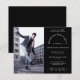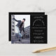Um valor para o alternativo do ORÇAMENTO em tamanho menor de 4,5 x 5,6" de semirbrilho de 110 lbs, que é de espessura semelhante a um cartão postal (no entanto, não é adequado para uso como cartão postal). POR FAVOR, OBSERVE QUE HÁ UM convite por folha. Convite para Festa de formatura Preta de Foto Orçamentária. Um design totalmente personalizável, basta substituir a foto de amostra por sua própria e personalizar o texto para seus detalhes. Você também pode alterar o plano de fundo preto em ambos os lados e a cor e estilo do texto, se desejar, por meio da opção Personalizar Mais.