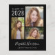 Anúncio de graduação em preto e econômico e convite de festas com uma colagem de fotos em 3 fotos, "Formando" em uma escrita em branco na moda, e o nome do formando, ano de aula e escola ou universidade na tipografia branca moderna. No verso, adicione uma foto adicional e os detalhes de sua festa de formatura.