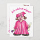 Basta personalizar com as informações do seu evento! O design do convite no estilo cartão-postal apresenta uma ilustração original feita à mão de uma garota com um chapéu e roupa de formatura cor-de-rosa, segurando um diploma. Também está disponível a versão azul.