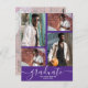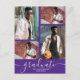 Adicione suas fotos favoritas a estes cartões postais de convite para festas de formatura com formando e classe de caracteres em letras quentes em um fundo de cor púrpura na frente. Mais designs e cores feitas em nossa coleção.