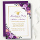 Placa de Convite para Festas de formatura Dourada e Floral Roxo-Violeta de Cor-de-Água - Parte Traseira Roxa
