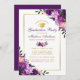 Placa de Convite para Festa de formatura Floral Dourada e Ultra Violeta Púrpura a Aquarela - Parte Traseira Roxa