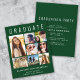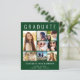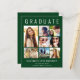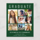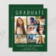 Anúncio de graduação verde moderno, elegante e acessível e convite de festas com "FORMANDO" no topo em letras brancas grandes, uma colagem de sete fotos e seu nome, ano de aula e escola em uma simples tipografia branca. No verso, adicione os detalhes da festa de formatura.