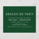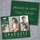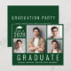Anúncio de graduação verde e convite de festas moderno e favorável ao orçamento, apresentando uma colagem de 4 fotos, "Formando" em letras brancas grandes e seu ano de aula, nome e escola ou universidade em tipografia branca simples. Adicione os detalhes da parte no verso.