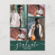 Adicione suas fotos favoritas a estes cartões postais de convite para festas de formatura com as palavras formando e classe de em caracteres quicos em um fundo verde escuro da escola na frente e seus detalhes no verso. Mais designs e cores feitas em nossa coleção.
