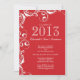 Comece a sua classe de evento de graduação de 2013 com nosso convite de anúncio de festa de formatura de rolagem branca, elegante, clássico e na moda, definido em um fundo vermelho. Convite à graduação moderna para a graduação ou formandos de um segundo grau. Fácil de personalizar, basta preencher suas informações de formando e você está pronto para ir. Visite nosso compro em www.celebrateitgraduations.com para uma grande variedade de convites para a graduação de tendências!
