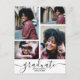 Adicione suas 4 fotos favoritas à frente e 1 à parte traseira desses convites de festa de formatura com formando, nome da sua escola e classe em letra chic. Adicione os detalhes da sua festa no verso. Mais designs e cores feitas em nossa loja.
