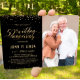 Este convite de festa de aniversário de bodas de ouro, de 50º aniversário, de 4,5" x 6,25", apresenta confetes dourados (simulação de folha metálica) com as palavras "aniversário de 50 anos de casamento" escritas em uma fonte dourada em itálico. Há uma área de foto personalizada para a imagem dos convidados de honra. O fundo é preto, mas pode ser alterado para qualquer cor de sua escolha. Os detalhes da celebração podem ser facilmente personalizados para o seu evento especial. O verso do cartão apresenta um padrão pontilhado dourado, também com fundo preto, que você pode personalizar ao seu gosto. Uma maneira simples e bonita de convidar os convidados para celebrar um aniversário de bodas de ouro. Cartões de RSVP e Agradecimento correspondentes também estão disponíveis na minha loja (https://www.zazzle