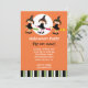 Convide sua família e amigos para a festa de Halloween com este convite festivo. Este convite preto e laranja mostra três bruxas bonitas em vassouras e lua de cheio. ©BabyStar Designs