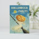 Este convite para o Festa de Halloween apresenta um abóbora com cabeça de abóbora numa vassoura de bruxas e um homem no fundo da lua com estrelas de ouro. Feliz Halloween! Há muito espaço nas costas para toda a tua informação.Nota: Este cartão não está gravado.