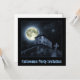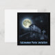 Convite com foto original de cena noturna com lua de cheio e casa assombrada.