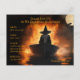 Uma bruxa sinistra em um velho barco navegando em direção às chamas com uma lua cheia brilhando, a caminho da sua festa. Envie este convite aos seus convidados neste Halloween. Eles certamente vão gostar enquanto esperam pela grande noite.