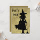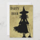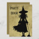 Bruxa com sua silhueta de vassoura em um fundo nebuloso pronto para uma festa. Use para o Halloween Bash, aniversário ou até um convite de solteira de bruxas.
