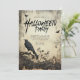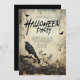 Este convite esquisito e encantador apresenta um corvo negro silenciado contra um céu embaciado, com morcegos voadores girando ao seu redor. As palavras "festa de halloween" são escritas em letra gótica, acrescentando ao sentimento sinistro do convite. É a maneira perfeita de convidar seus amigos para uma festa de Halloween que arrepia a espinha, onde eles podem vir vestidos seus trajes e ter um tempo espetacular.