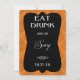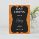 Convite para Festa de Halloween do Damask Gótico. Celebre o Halloween com este convite inspirado em gótico que apresenta um fundo com padrão laranja e negro e um quadro preto. "Coma, beba e seja assustador" é apresentado em letras assustadoras na frente, em uma armação preta. A parte de trás é feita em um padrão de quadro.