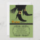 Que sua fabulosa festa comece com este convite de Halloween na moda. Ele apresenta um pé de bruxas enquanto ela corre sobre sua vassoura contra um fundo verde e preto.O cartão é fácil de personalizar com seu texto, fonte, cor da fonte e escolha de seis tipos de papel.