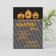Diversão e convite para a festa de Halloween. Apropriado para qualquer idade. Apresenta três abóboras sobre fundo preto e cinzas escuras. Adicione seu próprio texto.