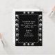 Este simples convite para a festa de Halloween tem muito estilo com sua aparência moderna. Um fundo preto é a forma perfeita de mostrar um quadro interior de ossos brancos. Ao redor de todo o quadro há uma série de crânios brancos em muitas posições. Seu texto personalizável está centrado no meio da área negra.