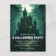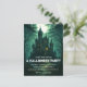 Convide convidados para a sua celebração assustadora com este cartão postal da festa de Halloween, um castelo assombrado. A frente apresenta um castelo verde arrepiante cercado por uma floresta nebulosa, sob uma lua de cheio brilhante que lança silhuetas longas e sombrias. Os morcegos voam pelo céu noturno, somando-se à misteriosa e ligeiramente sinistra atmosfera. Perfeito por dar o tom para uma noite de assombro, fantasias e diversão inesquecível, este cartão postal é uma forma inesquecível de espalhar a palavra.