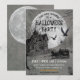 O convite da festa vintage do Dia das Bruxas, com uma casa assombrada, uma lua de cheio, uma carruagem desenhada por cavalos de uma funerária, e corvos zangados em um fundo de cinza de pedra. Por favor, veja minha loja para produtos mais assustadores. Excelente de: gótico, vintage, steampunk, antigo, vitoriano, Dia dos Mortos, e festas de fantasia.