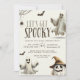 Organize a celebração definitiva do Halloween com este convite de festa de Halloween “Vamos Ficar Assustadores”! Perfeito para festas infantis, familiares ou de fantasias para adultos, este design fofo e ligeiramente assustador apresenta fantasmas felizes, morcegos, teias de aranha e um espantalho de abóbora caprichoso usando um chapéu de bruxa. Ideal para convidar os convidados para o seu concurso de fantasias ou reunião de doces ou travessuras. Personalize facilmente com os detalhes do seu evento, incluindo data, hora, local e informações de RSVP.