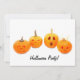 Este convite de Halloween diz "Festa Hallween!" na frente e no quarto para os detalhes do seu partido no verso. A frente tem uma foto de quatro abóboras bonitinhas.