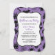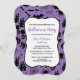 Convite para festa de Halloween roxo e preto. Padrão de mansão assombrado, roxo com morcegos, abóbora, aranha, teia, ossos, crânio