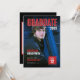 Destaque-se com este design de capa de revista elegante e ousado. O convite de celebração de formatura da capa da revista apresenta tipografia em negrito em vermelho e branco.