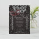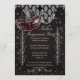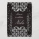 Dê à sua celebração a elegância e o mistério de uma noite no baile de máscaras. Este convite de aniversário de baile de máscaras preto e prata apresenta um padrão de damasco luxuoso com brilho, detalhes de pergaminho cintilantes e uma máscara veneziana dramática no centro, o equilíbrio perfeito entre sofisticado, ousado e glamoroso.