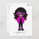 Convite de festa de aniversário com uma linda menina negra usando um casaco rosa de crochê, botas e óculos de sol.