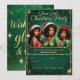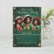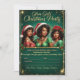 Celebre a temporada com estilo com este convite de luxo para a Festa de Natal das Glam Girls, projetado com um fundo brilhante em glitter esmeralda e apresentando três mulheres negras elegantes e fashionistas vestidas com trajes festivos de Natal. Este convite de Natal de 5x7 apresenta tons ricos de Natal, letras em estilo foil dourado e ilustrações glamorosas que definem o tom perfeito para um evento de Natal exclusivo para meninas.