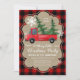 Convite para o Feriado de Natal de Caminhão Vermelho com fundo de xadrez de búfalo vermelho.