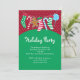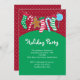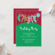 Comece a festa de Natal com a nossa bela fila de vestidos com meias penduradas, doces, gingerbread men, & lollipops molhados em um fundo verde com convite de festas de Natal para crianças com bolinhas vermelhas. Convite para festa de Natal perfeito para uma festa de Natal, festa de escritório, festa de empresa, festa de troca de cookies, festa de troca de ornamentos e festa de férias para crianças. ©Babystar Designs