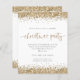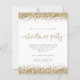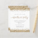 Convidado Dourado para a Festa de Natal do Glitter Script. Um alternativo de 4,5 pol x 5,6 pol com preço inferior. Disponível em um STOCK DE CARTÃO SEMI-GLOSS 110 lb, que é a opção padrão (mais espesso para convites), OU um STOCK de PAPEL THINNER FINISH 80 lb FINISH (ideal para gabinetes). Os envelopes são um extra opcional e são ligeiramente maiores que o tamanho da placa. Estilo de vírgula para sua festa de Férias de Férias com brilho dourado nas bordas superior e inferior de ambos os lados e em um script de escrita manual definido para a tipografia de ocasião. Personalize facilmente o texto para seus próprios detalhes.