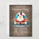 Convite para Festa de Natal. Convite para Jantar de Natal. Coroa de Flores de Natal. Papai Noel. Veado. Árvore de Natal. Fundo de Madeira Rústica. Vintage Retrô Country. Para personalização adicional, clique no botão "Personalize" e use nossa ferramenta de design para modificar este modelo.