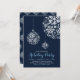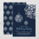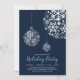 Celebre a temporada com este convite de festa de Natal. Este design apresenta belos ornamentos de bola de floco de neve com um tema de cores azul e marinho.