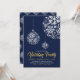 Celebre a temporada com este convite de festa de feriado. Este design apresenta belos enfeites de bola de floco de neve com um tema de cores dourado e azul-marinho.