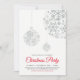 Celebre a temporada com este convite de festa de Natal. Este design apresenta belos enfeites de bola de floco de neve com um tema de cores vermelho e prata.