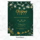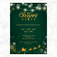 Elegante convite de festas de Natal com flocos de ouro e neve brancos, luzes de cordas e Papais noeis no seu trenó. Perfeito para reuniões festivas. Personalize facilmente com as informações de sua parte.