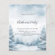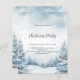 Bosque de inverno pintado à aguarela com neve como fundo. Festa de Natal escrita com estilo moderno e tendência de letra manuscrita grande. Personalize e adicione as informações da sua festa.