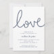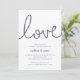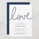 Nossos convites para festas de noivado de verão em chic costeiro apresentam estilo náutico clássico em azul e branco marinho. "Amor" aparece no topo em letras de looping script formadas com corda náutica. Personalize com seus detalhes de festa de noivado abaixo em uma combinação chic de serif e sans serif lettering. Perfeito para celebrações de noivados náuticas, de verão ou de praia.
