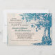 Antigos convites para festas de noivado rústicas e azuis: jares de mason cheio de flores azuis florescentes penduradas nos galhos do carvalho. Você pode adicionar pequenas iniciais ou palavras em cada jar também. Para melhorar a aparência da safra, sugiro uma bonito roupa texturizada ou um tipo de papel de feltro para este convite em particular. Se precisar de mais itens correspondentes, ou se tiver alguma dúvida, entre em contato comigo.
