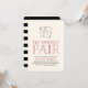 Perfeito para amantes de pôquer ou festas de noivado noturnas de casino, nossos convites para festas de noivado temáticos de casino apresentam um par de ases (o cartão frontal é o ás dos corações, naturalmente!) com "um par perfeito" no estilo escrito à mão, tipografia vermelha escura. Adicione seus detalhes de festa de noivado usando os campos modelo fornecidos.