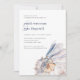 O convite para festa de noivado cúbica costeira apresenta uma ilustração pastel cor-de-rosa-pincel e marfim à direita, com os detalhes da festa de noivado em azul-marinho e cinza suave clássicas. Perfeito para a praia, verão ou celebração de noivados náuticos, estes convites estilo costeiro invertem-se para o rosa-casca sólida.