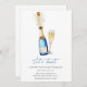 Celebre seu noivado de estilo com este Convite para Festa de noivado de Champanhe Moderno com uma garrafa azul de champanhe elegante e design de flauta. Perfeito para uma família de chás ou noivados inspirada em "algo azul", este convite minimalista dá o tom para uma celebração moderna e elegante. Personalize com seus detalhes de eventos e brinde ao amor!