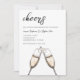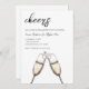 Festa de noivado com um esboço manual de óculos de champanhe. Este design apresenta duas bebidas que estão fazendo um aplauso. Há também um anel de noivado. Anime-se pelo casamento com este simples, moderno e mínimo design perfeito para uma celebração de noivado. Bem-vindos a seus convidados com um convite que mostra parabéns e votos de felicidade para o casal feliz. Personalize e personalize para adicionar seus próprios nomes e detalhes do evento. Parabéns ao casal feliz que logo será casado!