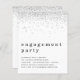 Um valor para o alternativo do ORÇAMENTO em tamanho menor de 4,5 x 5,6" de semirbrilho de 110 lbs, que é de espessura semelhante a um cartão postal (no entanto, não é adequado para uso como cartão postal). POR FAVOR, OBSERVE QUE HÁ UM convite por folha. Festa de noivado Silver Glitter Invite.O cabeçalho é grande em na moda-lowercase com os detalhes abaixo. Muito espaço branco no topo para uma sensação contemporânea! Personalize facilmente o texto para seus próprios detalhes.