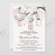 Convite de festa de noivado cômica com flores cor-de-rosa e jarros de mason. Perfeito para festas de primavera.
