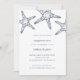 Nossos convites para festas de noivado de verão em chic costeiro apresentam estilo náutico clássico com um olhar limpo e minimalista e um toque reluzente da vida marinha. Design apresenta três ilustrações azuis marinhos no topo, com seus detalhes de festa de noivado em uma combinação chic de serif e sans serif. Perfeito para celebrações de noivados náuticas, de verão ou de praia.